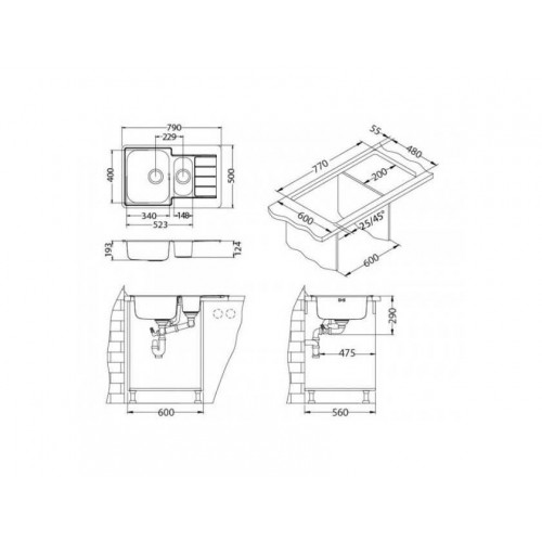 Размер мойки 790x500