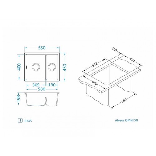 Новая коллекция OMNI от ALVEUS - это универсальное решение для современной кухни. Два варианта монтажа - классический врезной и подстольный. Два крепежа для двух способов крепления в комплекте. Четкие грани, скрытый в чаше перелив. 5 лет заводской гарантии.