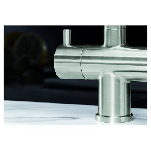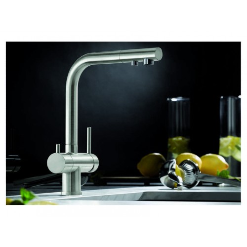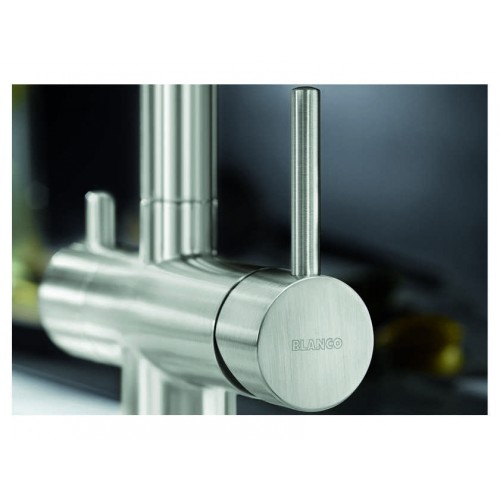 Смеситель Blanco Fontas II объединяет сразу две функции - питьевая и обычная вода из одного смесителя. Высокий излив обладает двойной функциональностью, питьевая вода не смешивается с обычной и подается из отдельного отверстия. Смесителем удобно пользоваться , так как он имеет два отдельных рычага управления для водопроводной и фильтрованной воды соответственно. Излив смесителя вращается на 360 градусов, что позволяет направить поток воды в наиболее удобное место.