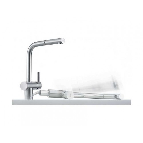 Однорычажный смеситель с выдвижным шлангом и поворотным изливом. Монтаж под окно.