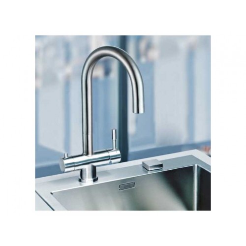Удобство и практичность. Franke EOS Clear Water имеет небольшие размеры: высота излива составляет 244 мм,а длина составляет 185 мм. Смеситель с легкостью подключается с помощью шлангов длиной 550 мм. Устойчивость обеспечивается стабилизирующей пластиной. Излив вращается на 360град., что в совокупности с высоким расположением обеспечивает исключительное удобство при использовании.