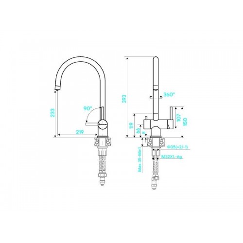 Смеситель KÜCHENSTERN DRIM-F объединяет сразу две функции - питьевая и обычная вода из одного смесителя. Смесителем удобно пользоваться , так как он имеет два отдельных рычага управления для водопроводной и фильтрованной воды.