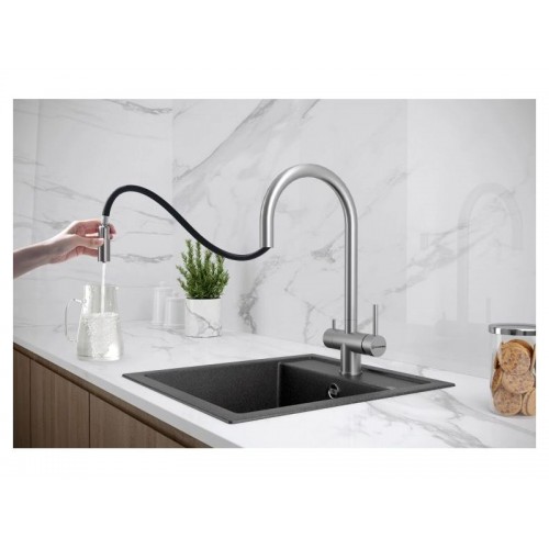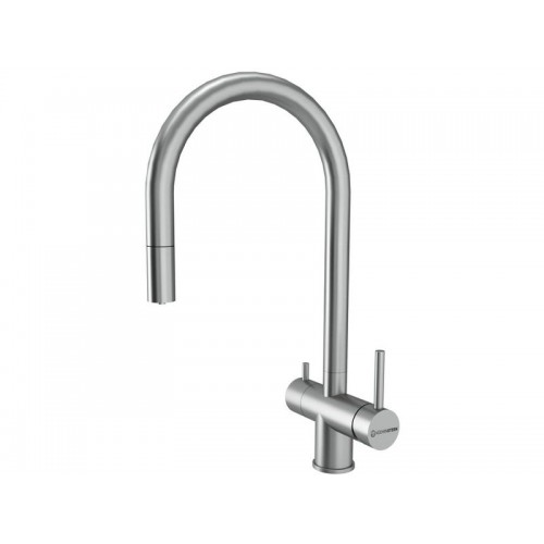 Смеситель KÜCHENSTERN DRIM-FS объединяет сразу две функции - питьевая и обычная вода из одного смесителя. Смесителем удобно пользоваться , так как он имеет два отдельных рычага управления для водопроводной и фильтрованной воды.