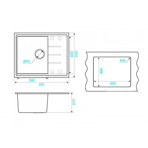 Размер мойки - 615х500х200мм