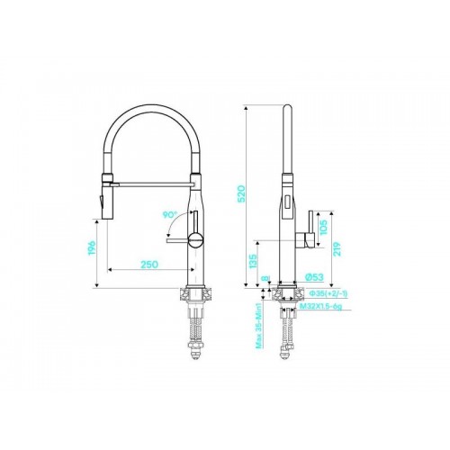 Длина излива: 250 мм