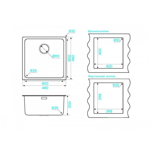 | Тип монтажа | монтаж сверху или под столешницу |