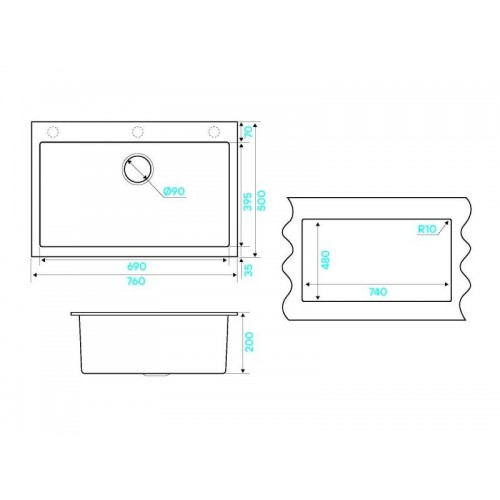 Размер мойки - 760х500х200мм