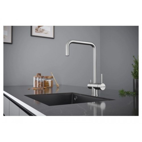 Смеситель KÜCHENSTERN STROM-F объединяет сразу две функции - питьевая и обычная вода из одного смесителя. Смесителем удобно пользоваться , так как он имеет два отдельных рычага управления для водопроводной и фильтрованной воды.