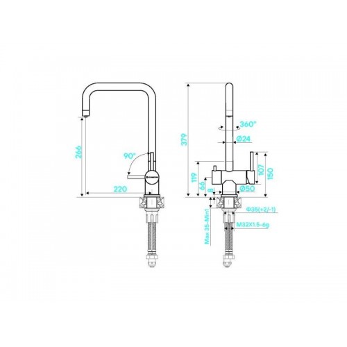 Высота излива: 266 мм