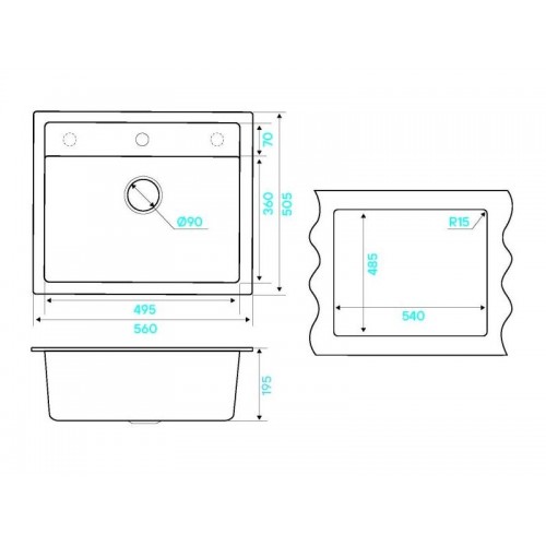 Размер мойки - 560х505х195мм