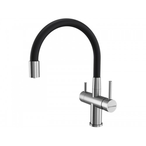 Смеситель KÜCHENSTERN WURM-FE объединяет сразу две функции - питьевая и обычная вода из одного смесителя. Смесителем удобно пользоваться , так как он имеет два отдельных рычага управления для водопроводной и фильтрованной воды, а также переключается на режим "Душ".