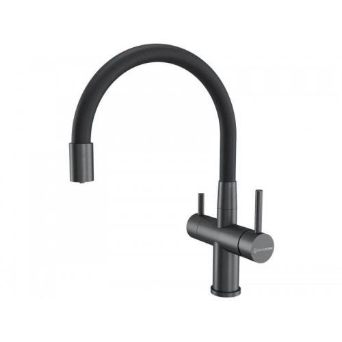 Смеситель KÜCHENSTERN BRUNN-FE объединяет сразу две функции - питьевая и обычная вода из одного смесителя. Смесителем удобно пользоваться , так как он имеет два отдельных рычага управления для водопроводной и фильтрованной воды, а также переключается на режим "Душ".