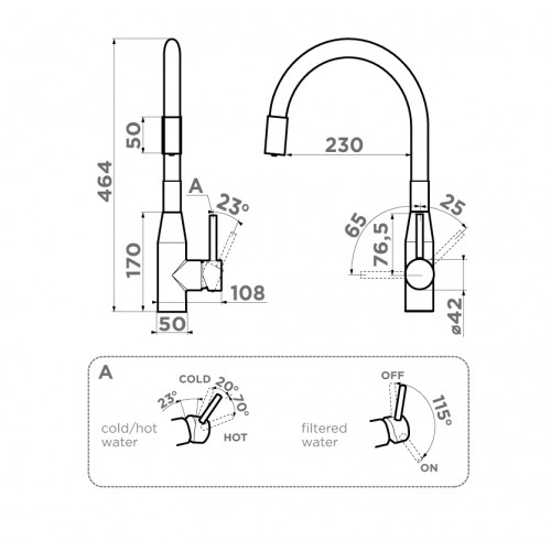Смеситель Yatomi 2 Plus выполнен в ультрасовременном стиле и снабжен высоким поворотным шлангом, который при изменении формы всегда остается в устойчивом положении.