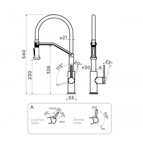 Технология PURE LIFE®: подключение фильтра для очистки воды. Фильтрованная вода подается по отдельной трубке и не смешивается с водопроводной водой.